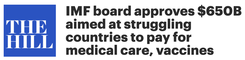 I mean the fact that the IMF and World Bank have been funding COVID propaganda for over a year, and are funding vaccine distribution worldwide, and are now saying that worldwide vaccine and Covid expenses necessitate a “world tax” that the IMF will control and administer is totally coincidental. Trust me.
