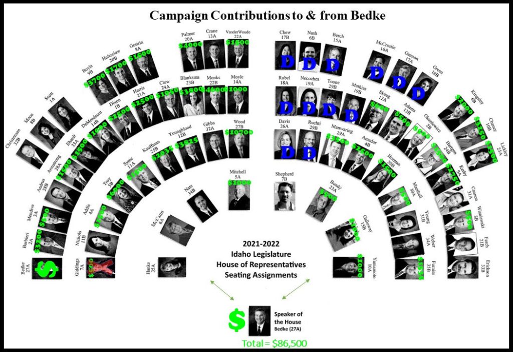 But not in the RINO infested Idaho swamp! Nooooo! Here, not only was it allowed, but it was condoned, and the majority of Idaho representatives (most likely including your own representatives), supported this filthy censuring of an innocent and righteous representative. Why, you might ask? Well, just follow the money. Look at who has received money from Scott Bedke in order to preserve their own seats: