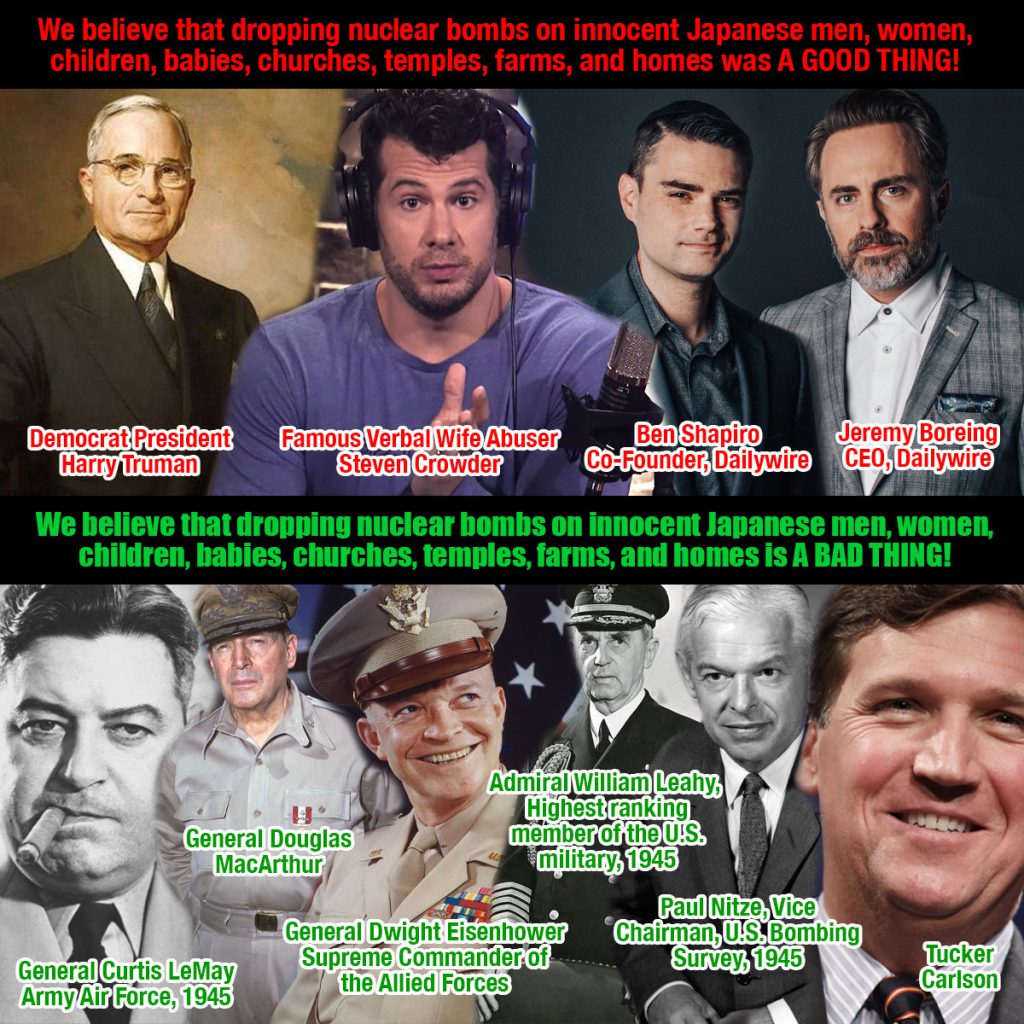 - Steven Crowder – What Tucker Gets Wrong About the Atomic Bombing of Hiroshima and Nagasaki