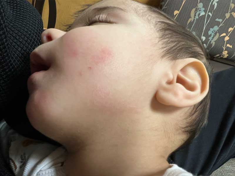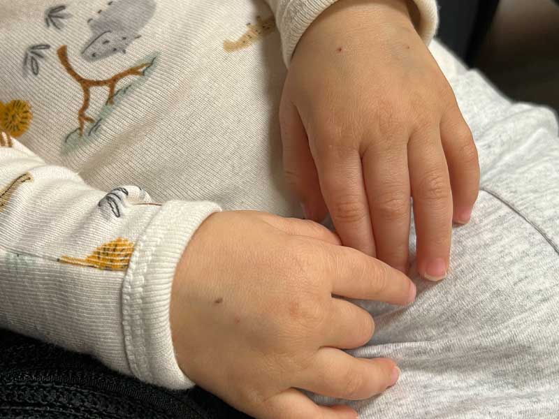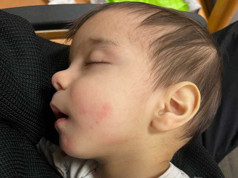 Cyrus was completely unresponsive and exceedingly lethargic.With St. Luke’s, Cyrus had reactions on his cheeks, chin, and around his mouth because the hospital is evidently not cleaning his face when he spits up. He was being neglected by the hospital!Most troubling are the pricks on his hands which show he has been jabbed at least 4 times!!! They claim it was only for the IV, but it makes no sense to have 4 jabs for a simple IV. Levi and Marissa were promised no vaccines would be given, nor would any medical procedure be performed without their express permission. Yet we see 4 jabs.