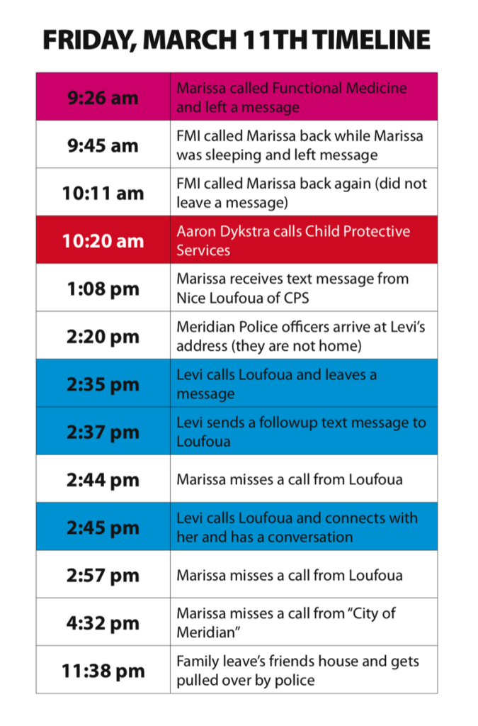 We will have the timeline for the ENTIRE STORY shortly. For now, we have the timeline from Friday, March 11th, the day Baby Cyrus was kidnapped.